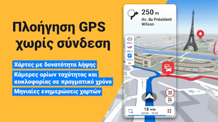 Το Sygic GPS Navigation & Maps προσφέρει καινοτόμο πλοήγηση GPS με ενημερωμένους χάρτες εκτός σύνδεσης. Απολαύστε ακριβείς ειδοποιήσεις κυκλοφορίας και καμερών ταχύτητας σε πραγματικό χρόνο. Εμπιστευτείτε τις τρισδιάστατες απεικονίσεις και τις δωρεάν ενημερώσεις χαρτών, όπως κάνουν πάνω από 200 εκατομμύρια οδηγοί παγκοσμίως. Πλοηγηθείτε άνετα χωρίς internet.
